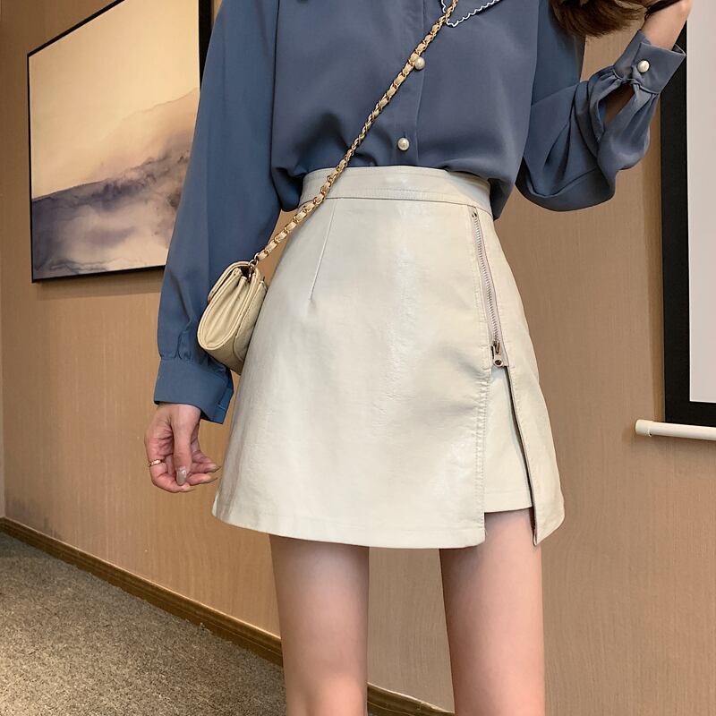 ウェストスカート スプリングオータムレザーAラインスタンダードショート レトロ 春物 秋物 試着室83512777807