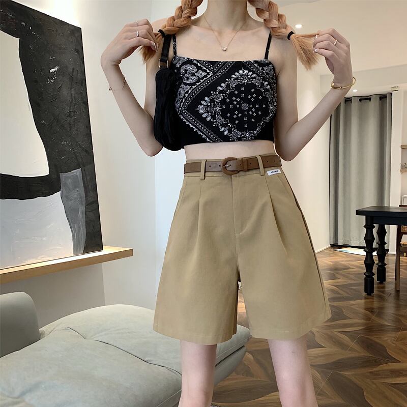 カーキショーツ サマー薄手ハイウェストウェストルーズパンツ 夏物 ブルマー 試着室50683732385