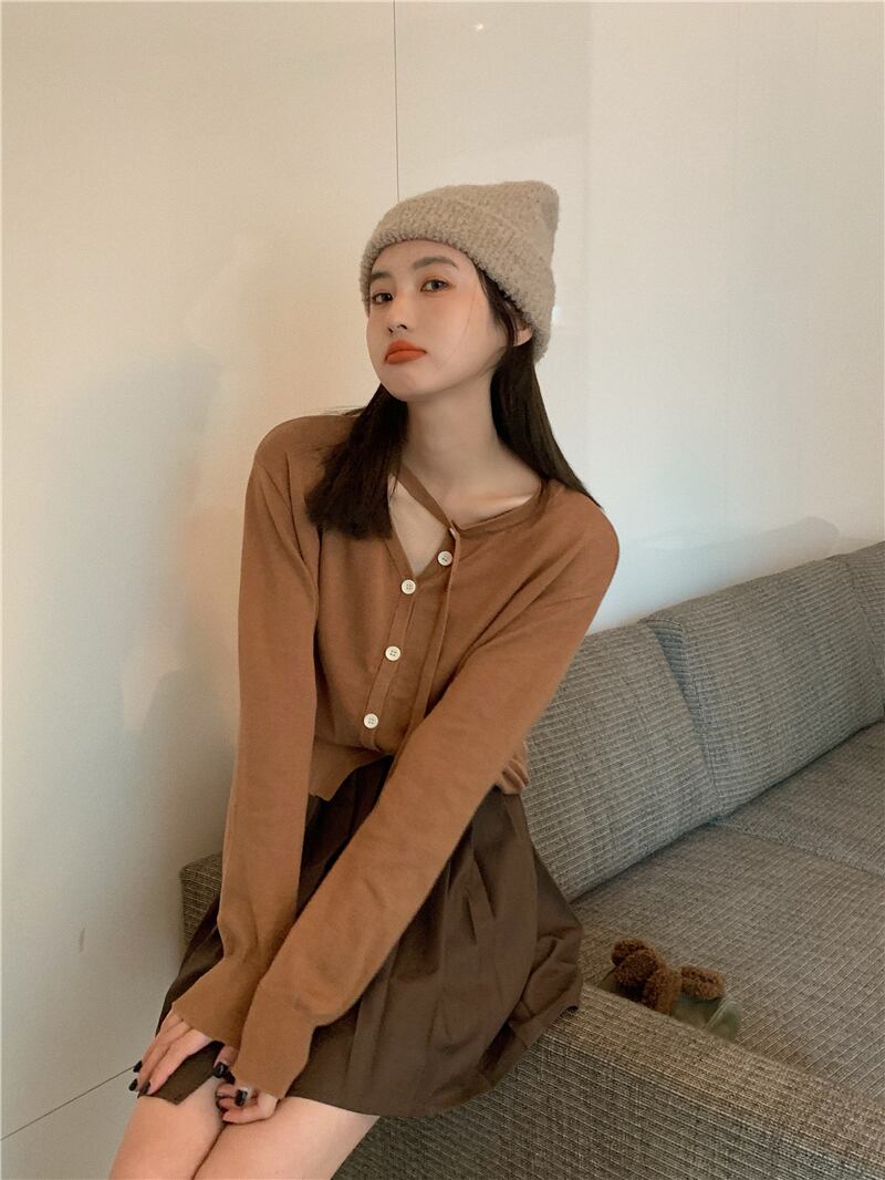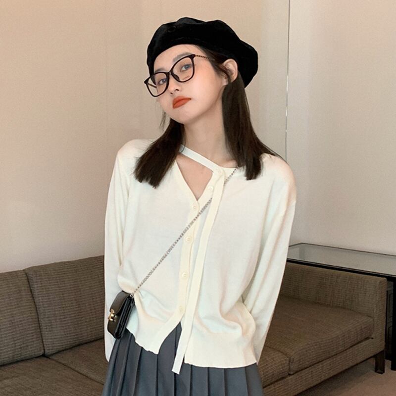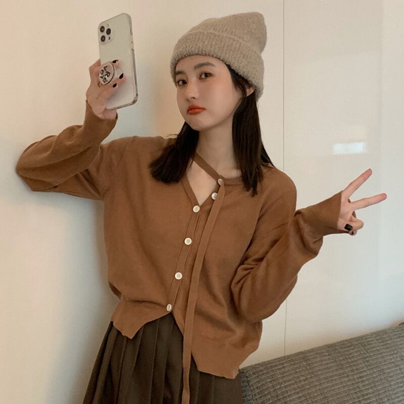 ニットカーディガンスプリングオータム薄手セーター ジャケット ショートトップス ロング 春物 秋物 試着室75372233609