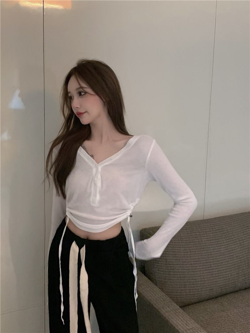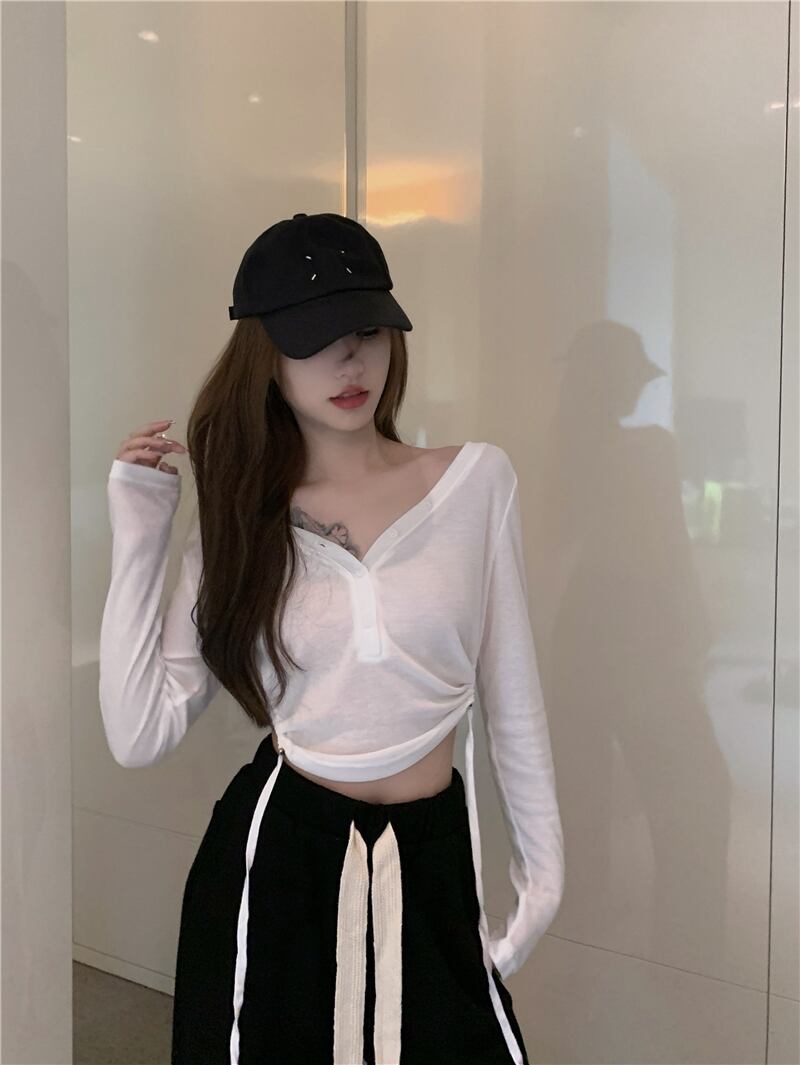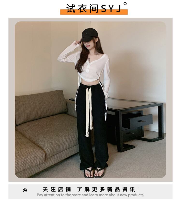 ブラックパンツ サマー薄手ハイウェストウェストルーズカジュアル 夏物 試着室71456697563