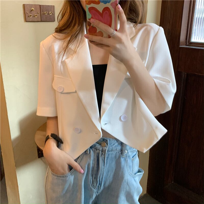 ホワイトショートジャケット サマー薄手レッド ストリート 夏物 試着室6704672318