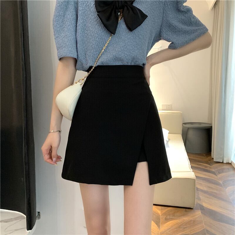 ブラックスカート サマーハイウェストウェスト薄手Aラインショート 夏物 試着室91972035917