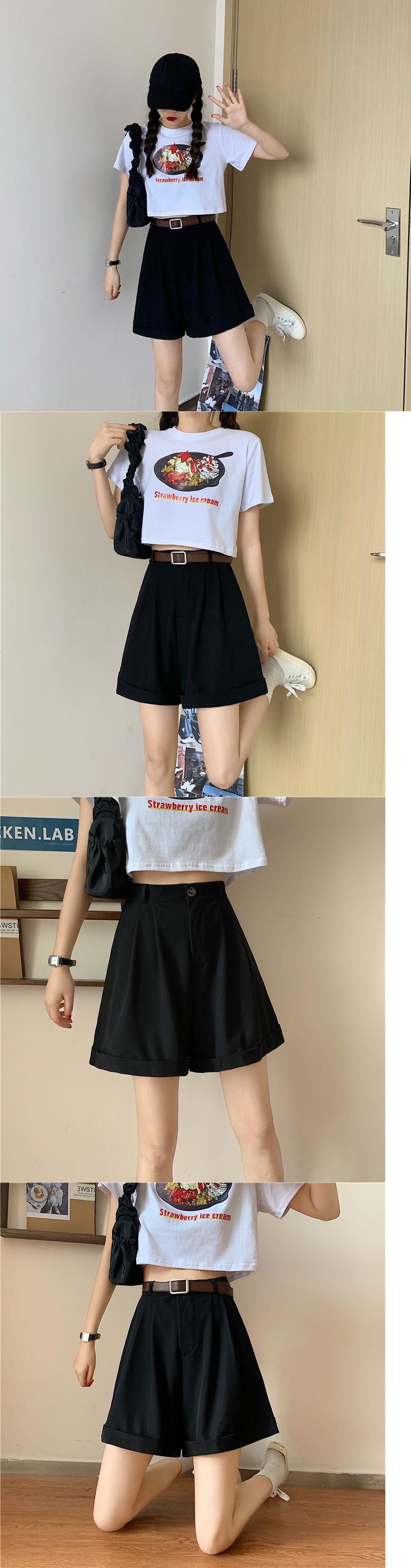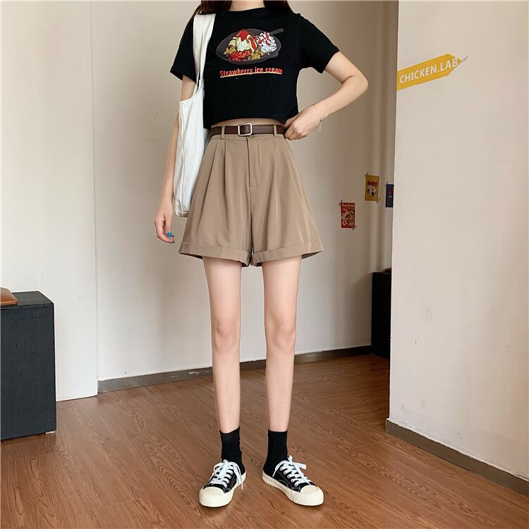 ブラックショーツ サマー薄手ハイウェストウェストルーズワイドレッグパンツ 夏物 ブルマー ワイドパンツ 試着室10493044022