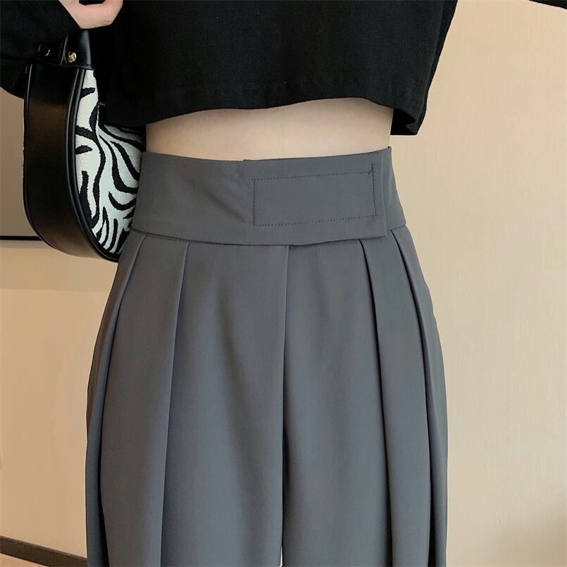 グレーパンツ スプリングオータムハイウェスト薄手ルーズカジュアル 春物 秋物 試着室9521861074