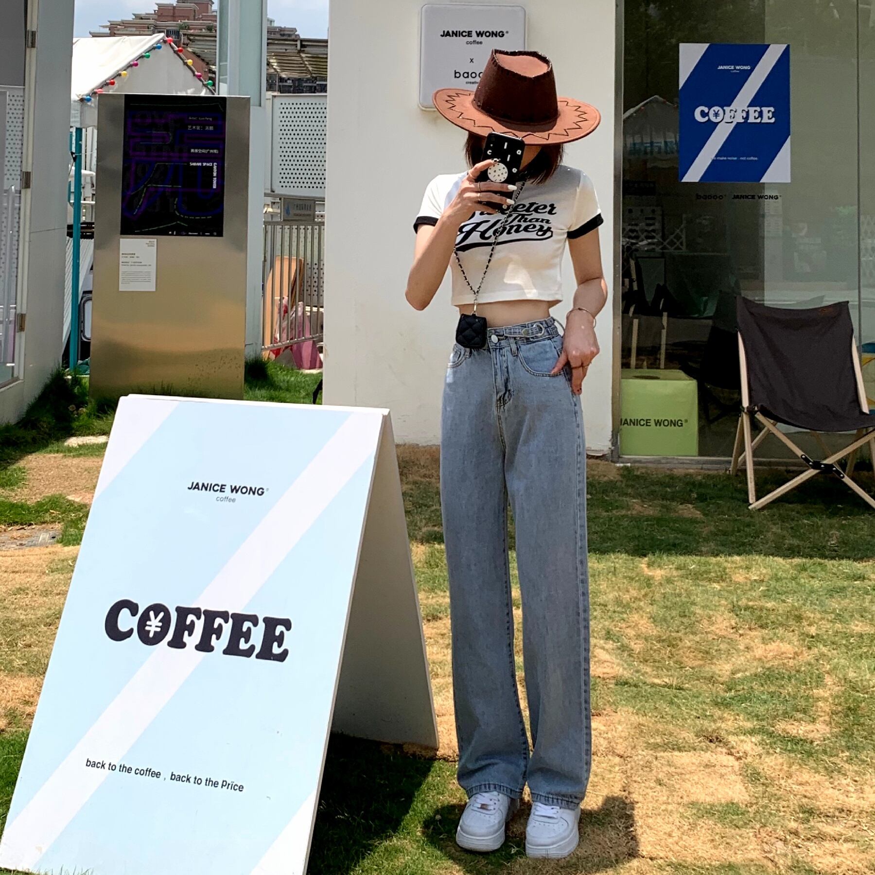 スプリングオータムブラックジーンズ ルーズパンツ ハイウェストウェスト 春物 秋物 試着室52546884464