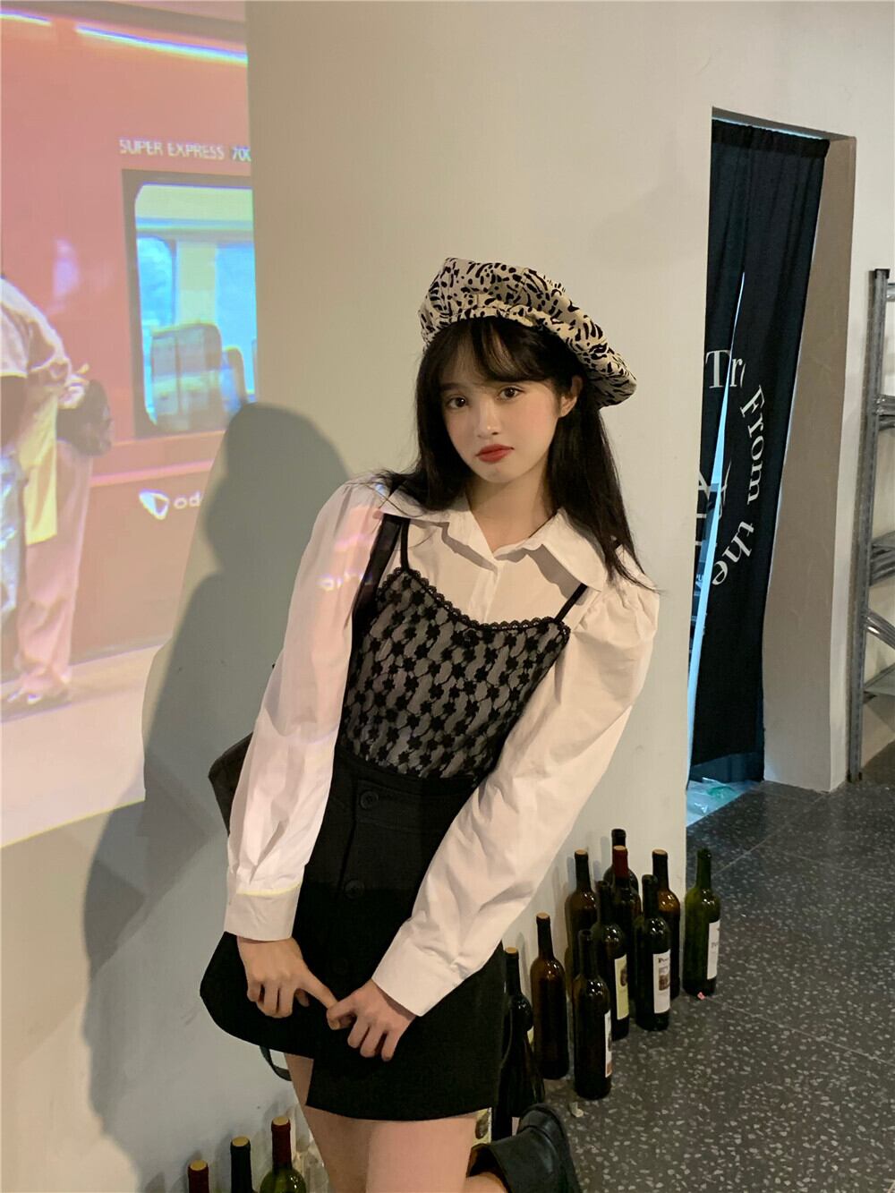 色:偽のシングルシャツ2枚,黒のハーフスカートワンピース