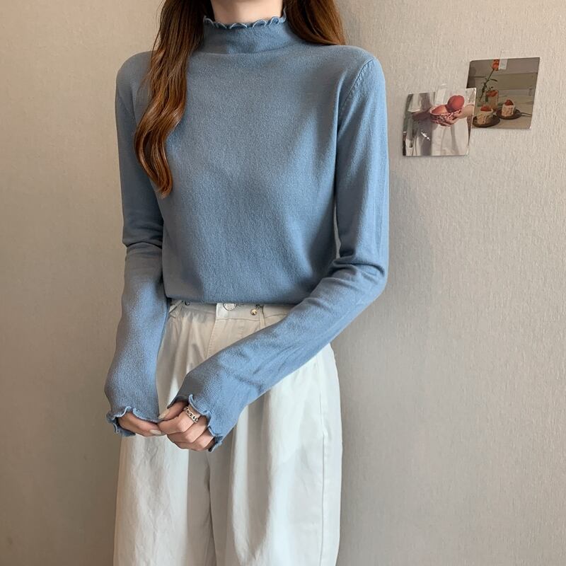 ブラックカラーシャツ スプリングオータム薄手スリムニットセーター 春物 秋物 試着室74037346230