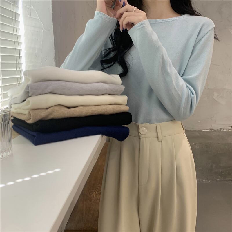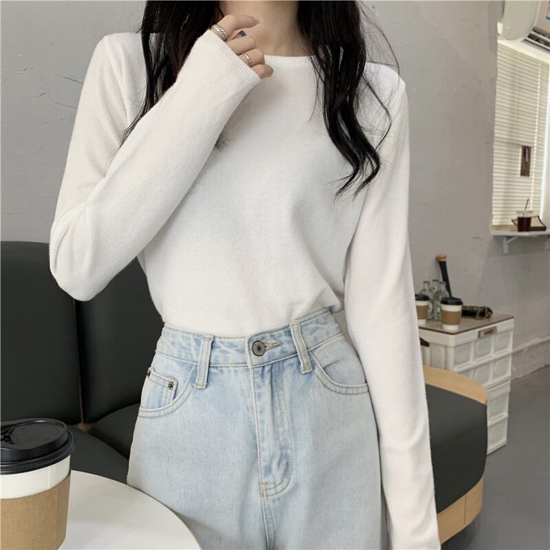 ホワイトシャツ スプリングオータム薄手トップス スリムニットセーター 春物 秋物 試着室11282203177