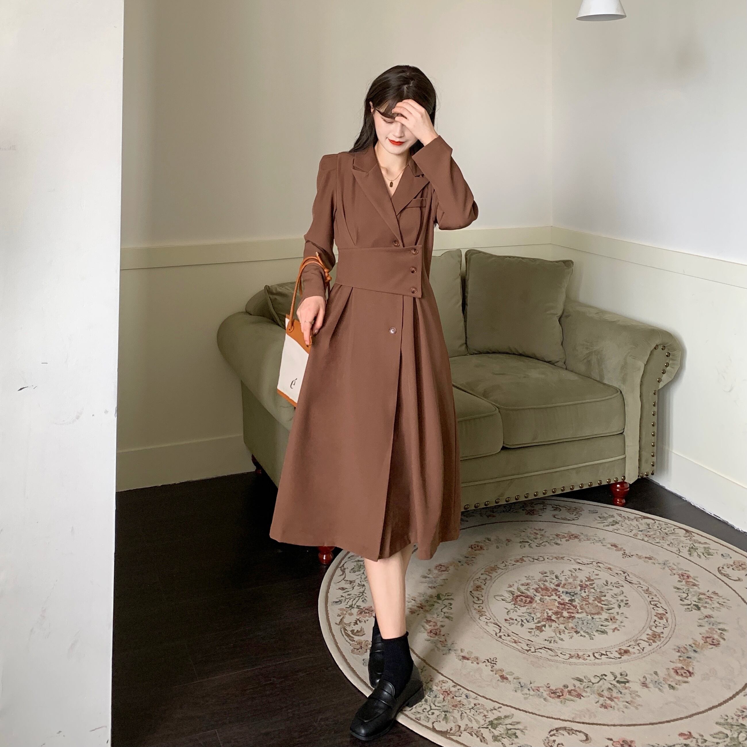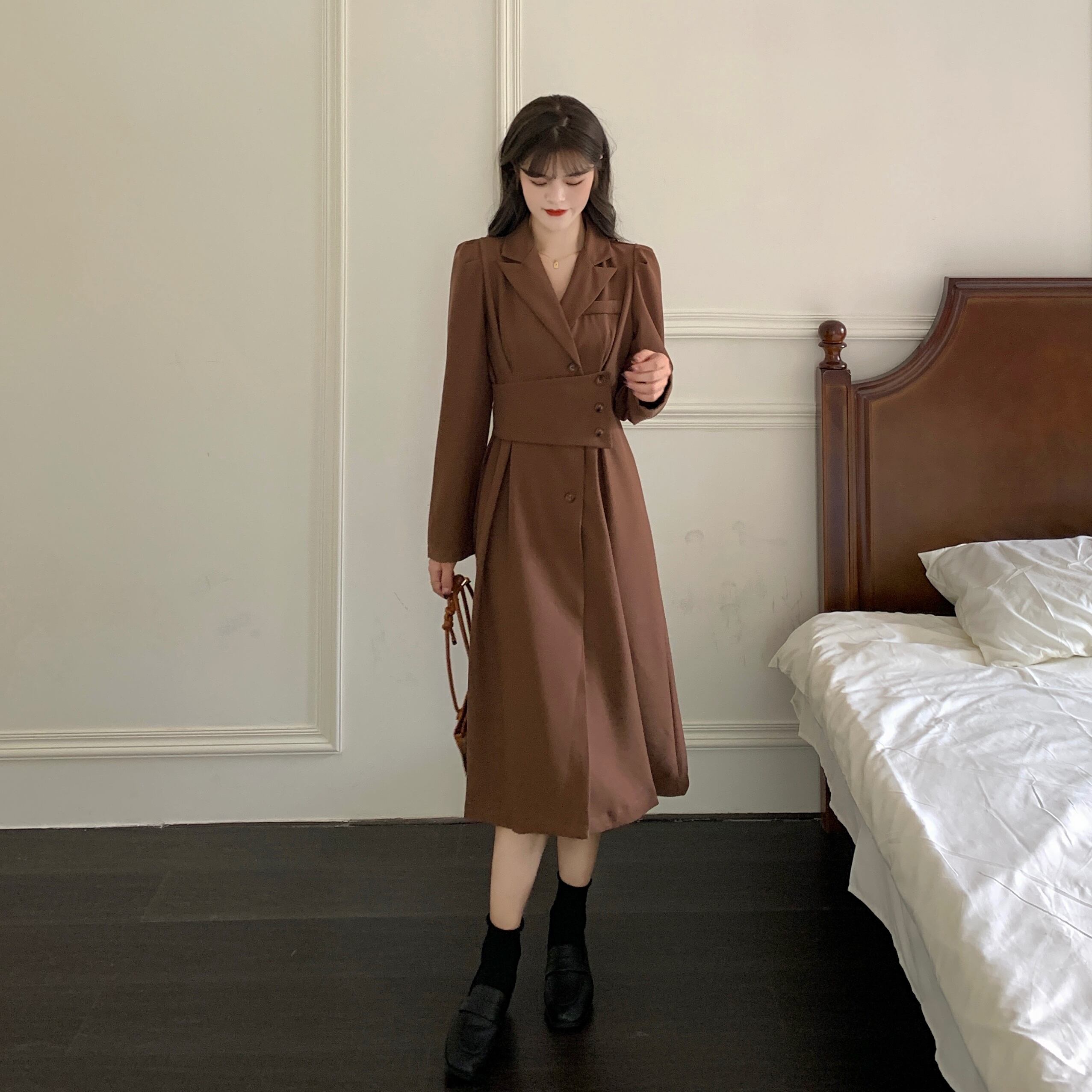 ブラックドレス スプリングオータムスタンダードウェスト薄手スカート レトロ 春物 秋物 試着室44636176081
