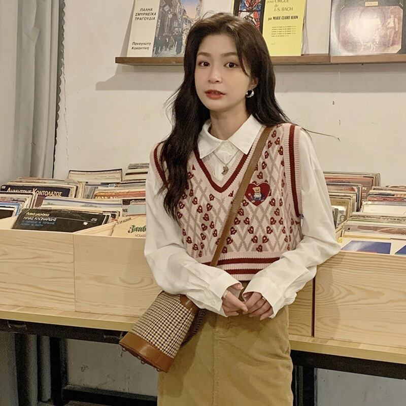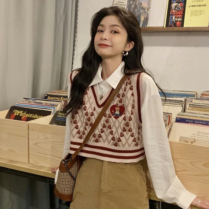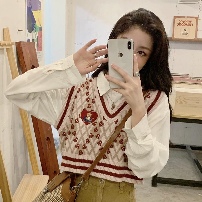 スタイルVネックニットスプリングオータムセーター ショートノースリーブレッド 半袖 ハーフスリーブ 春物 秋物 試着室22139479057