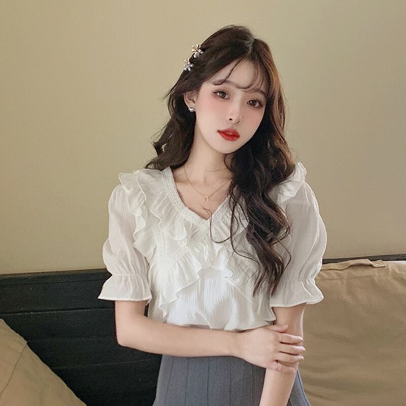 ホワイトシフォンシャツ レディースサマースタイルスリーブトップス 夏物 試着室22450115289