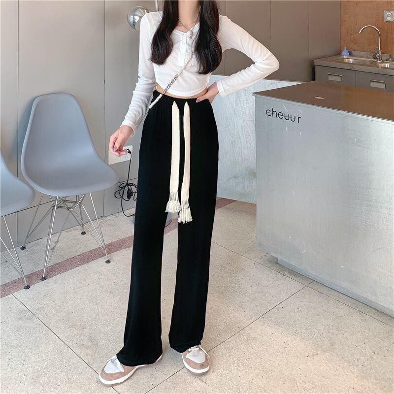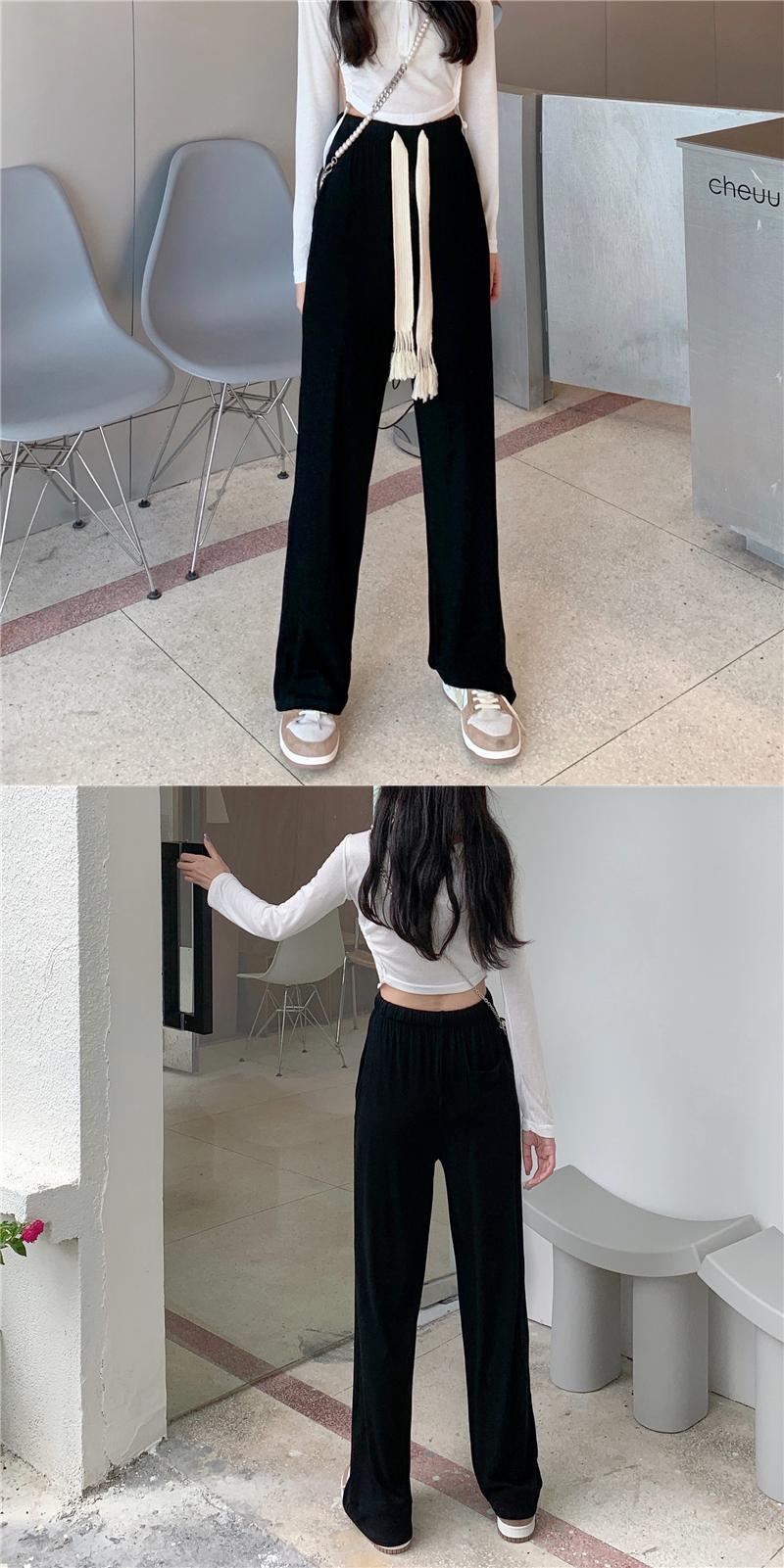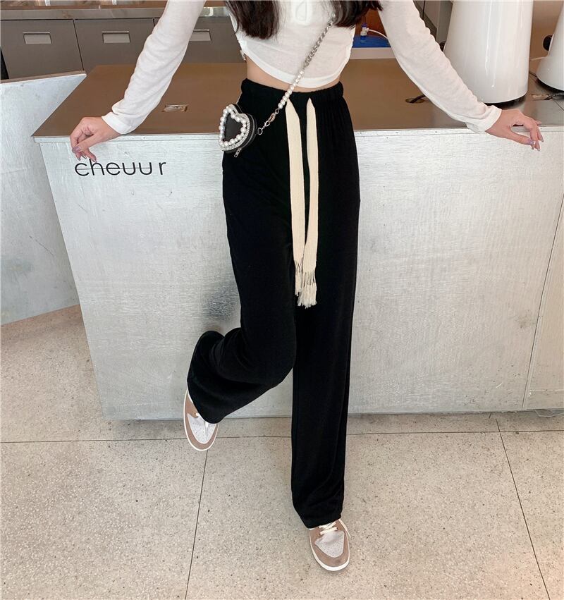 スプリングオータムブラックパンツ ハイウェストウェストカジュアル 春物 秋物 試着室46656905668