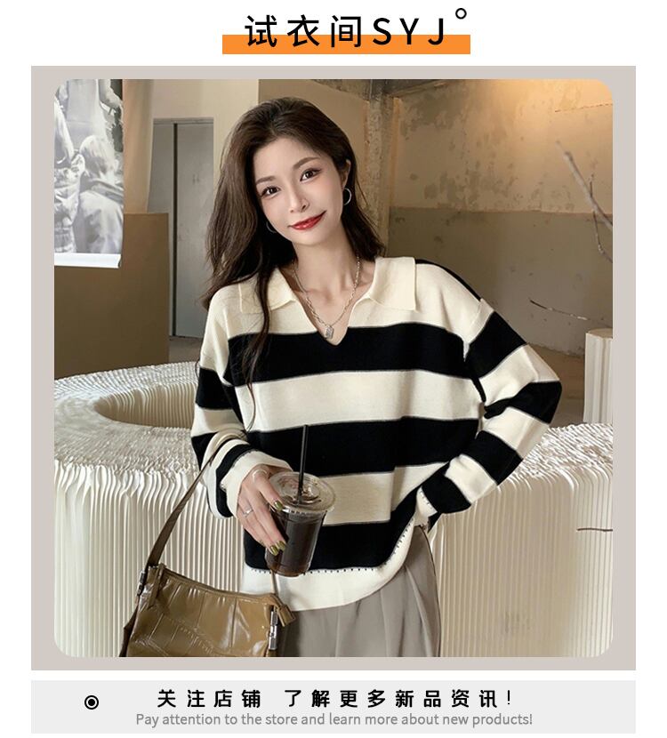 ストライプセーター スプリングオータムスタンダードスタイルショートトップス ロング レトロ 春物 秋物 試着室64861425234