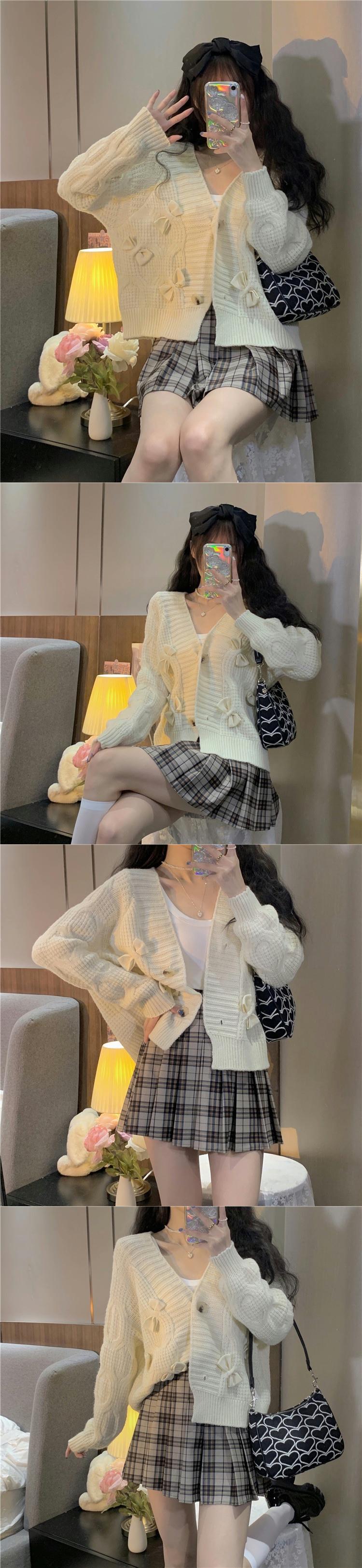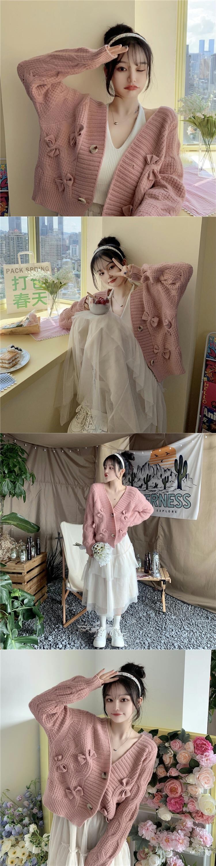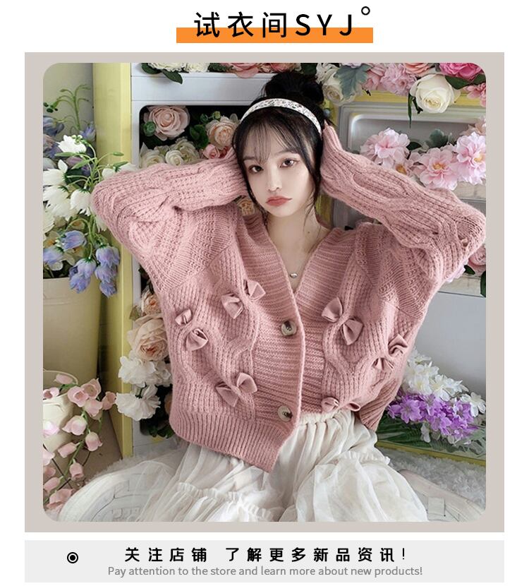 セーター コート スプリングオータムルーズショートニットカーディガン ピンク 春物 秋物 試着室83784975195
