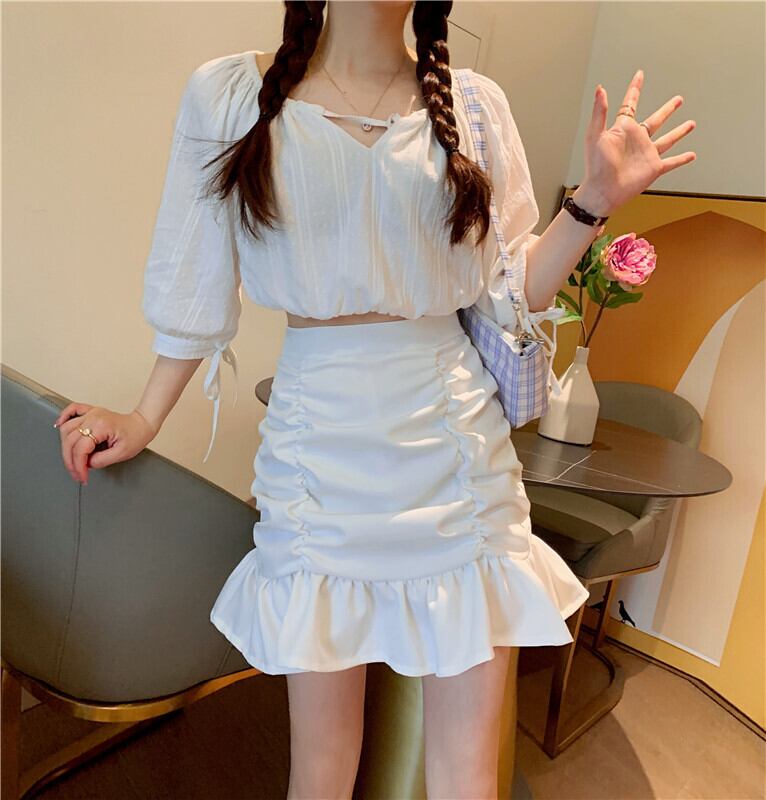 ホワイトショートスカート サマーAラインハイウェストウェスト薄手 夏物 試着室95216994702