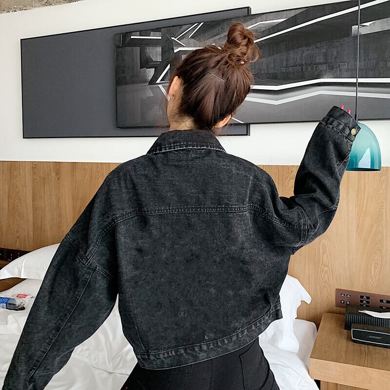 ブラックジャケット スプリングオータムルーズスタンダード レトロ 春物 秋物 試着室57725325641