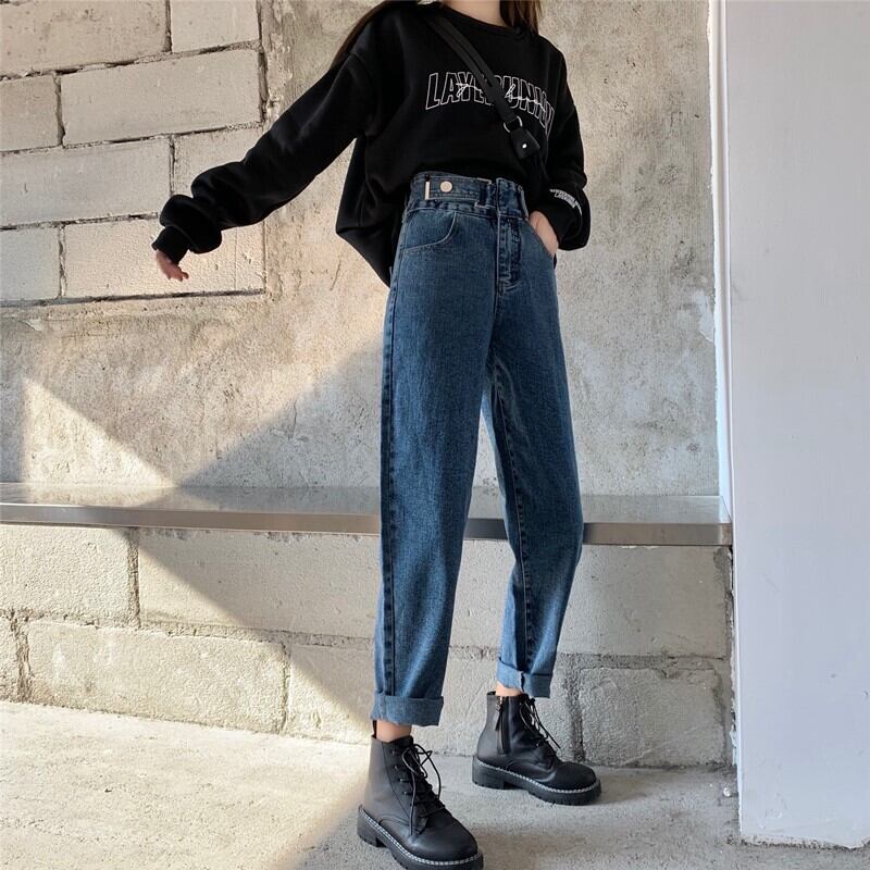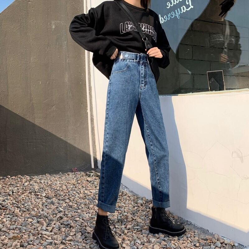 スプリングオータムスタンダードジーンズ ルーズパンツ ハイウェストウェストスリム レトロ 春物 秋物 試着室65079126776