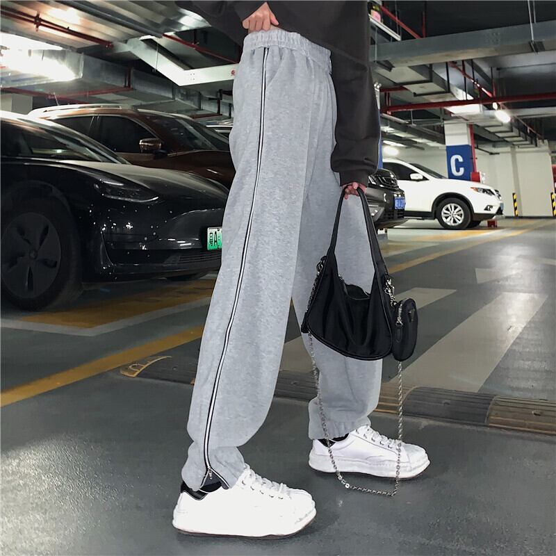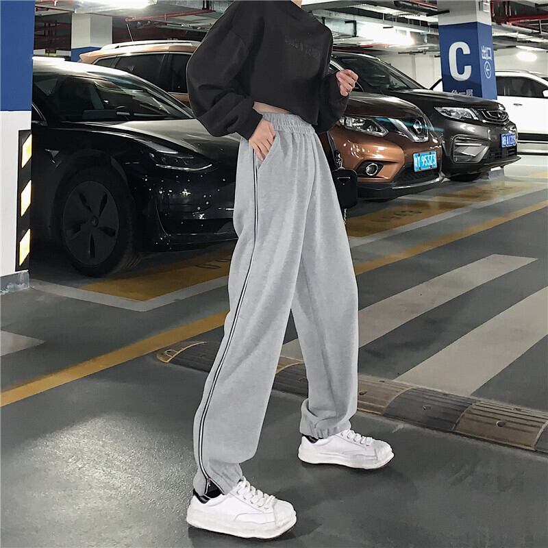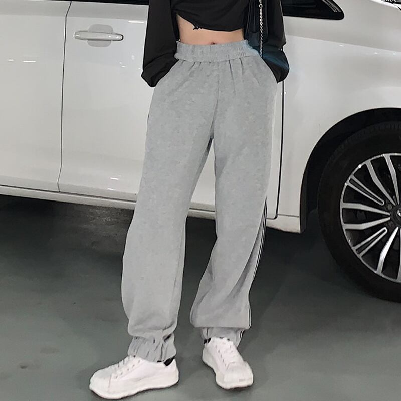 スプリングオータムグレーパンツ ハイウェストウェストスリムカジュアル 春物 秋物 試着室32189528592