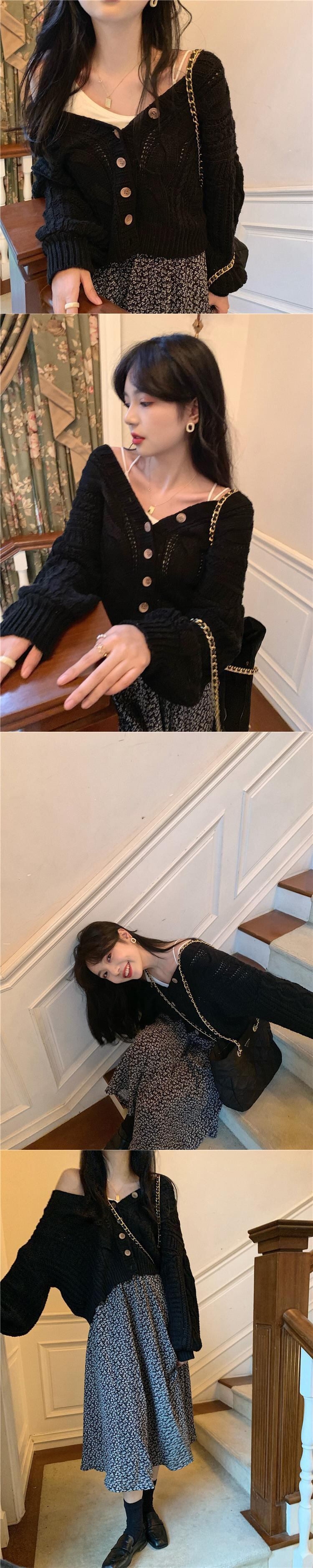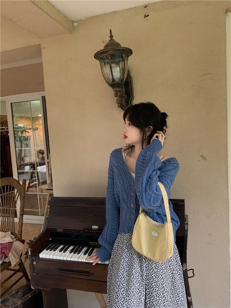 ブルーショートセーター コート オータムウィンタールーズスタンダードニットカーディガン レトロ スプリング 春物 秋物 冬物 試着室20419689380