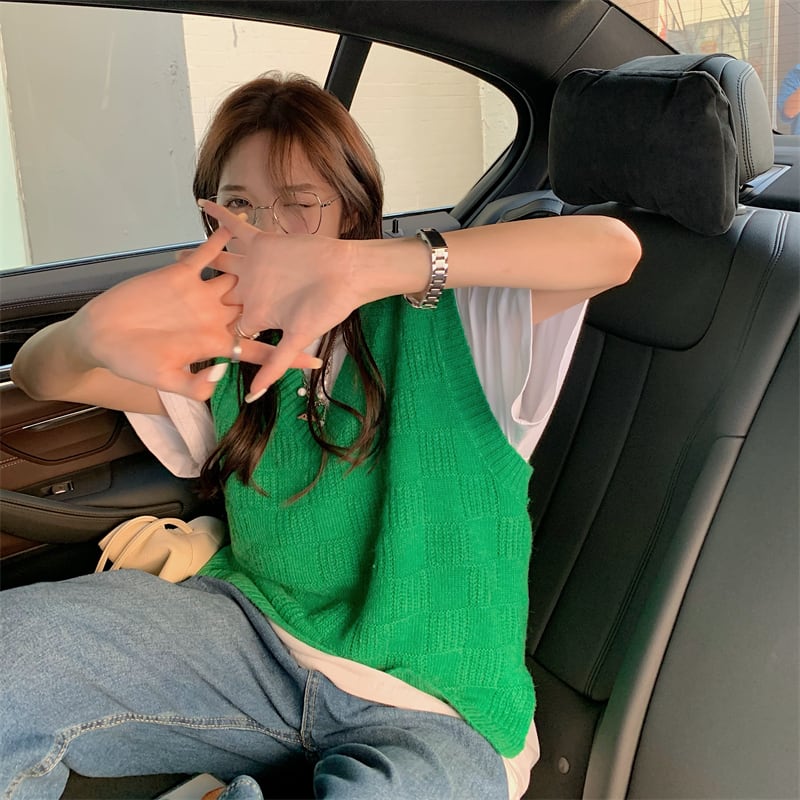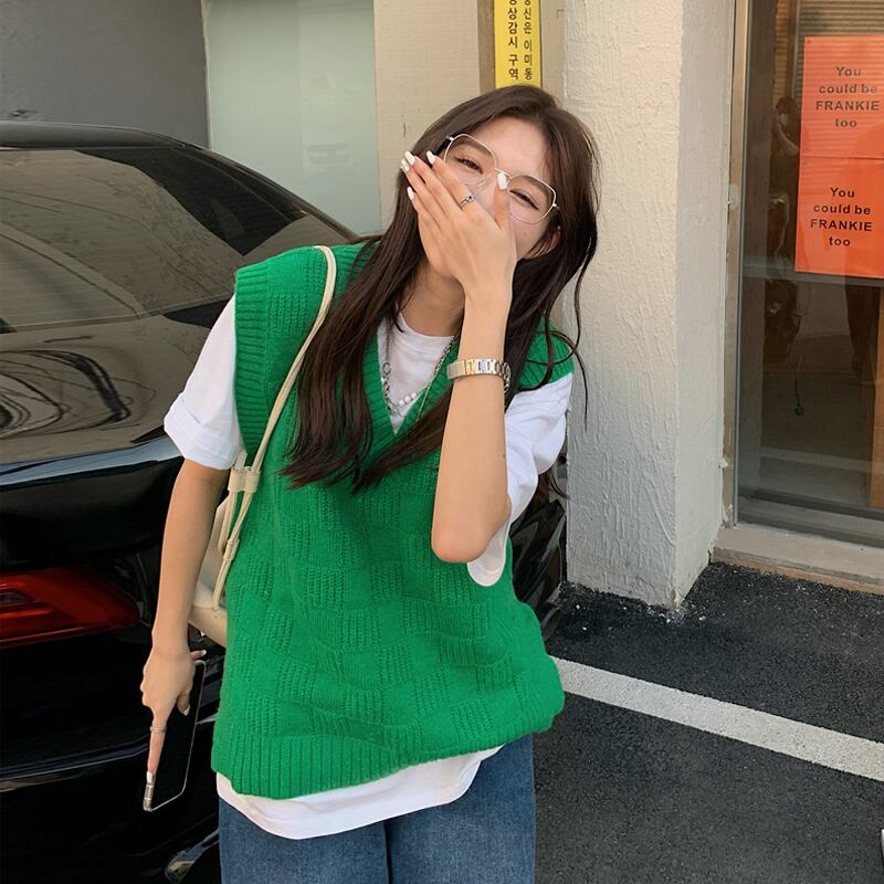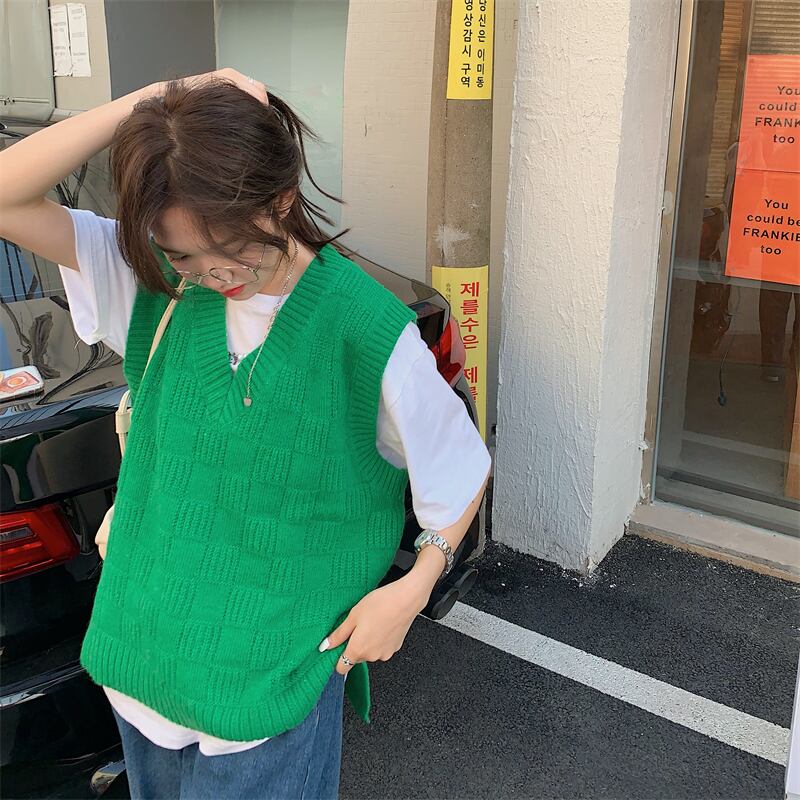 グリーンVネックニットスプリングオータムセーター レッドスタンダード レトロ 春物 秋物 試着室71960530604