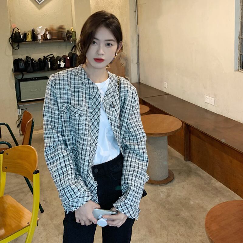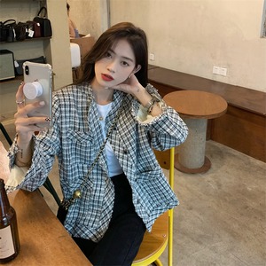 格子柄ジャケット ルーズスプリングオータムカーディガントップス ロング ストリート 春物 秋物 試着室36986904488