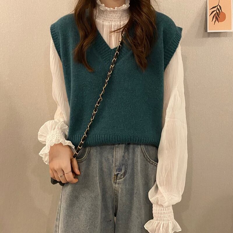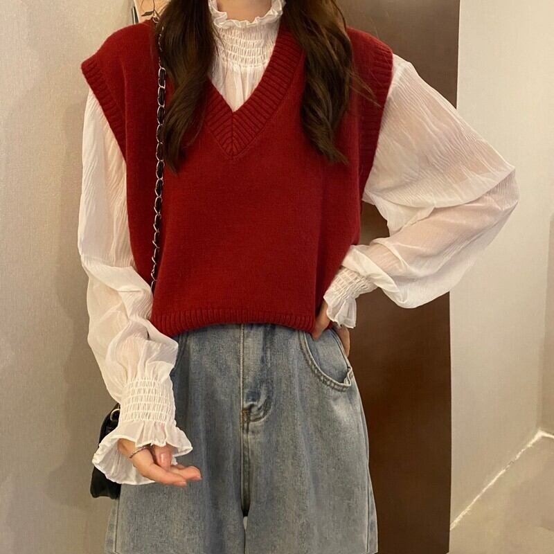 スタンダードニットスプリングオータム薄手ノースリーブ レトロ 春物 秋物 試着室68352153943