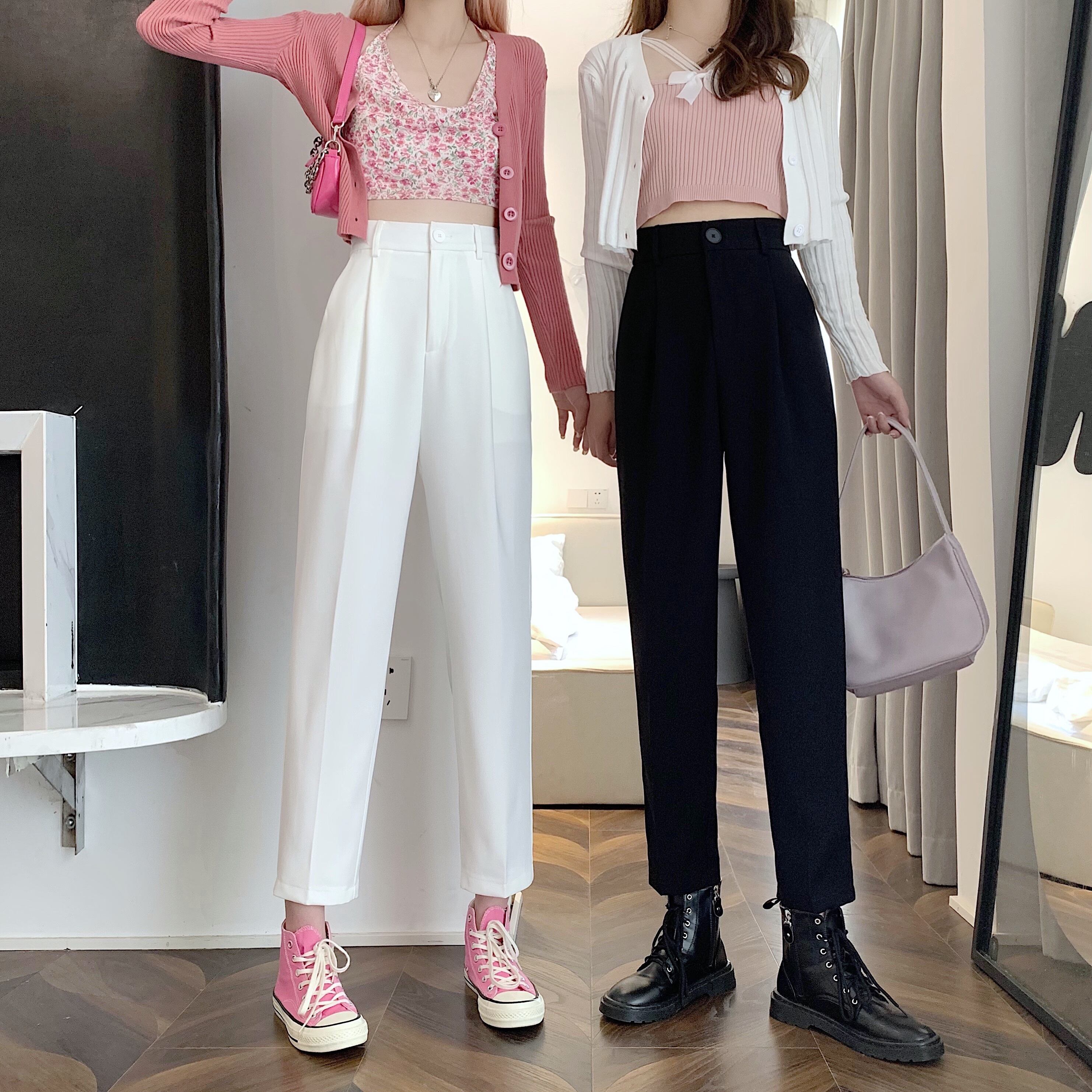 パンツ スプリングオータムルーズハイウェストウェストカジュアル 春物 秋物 試着室96039875780