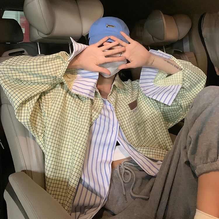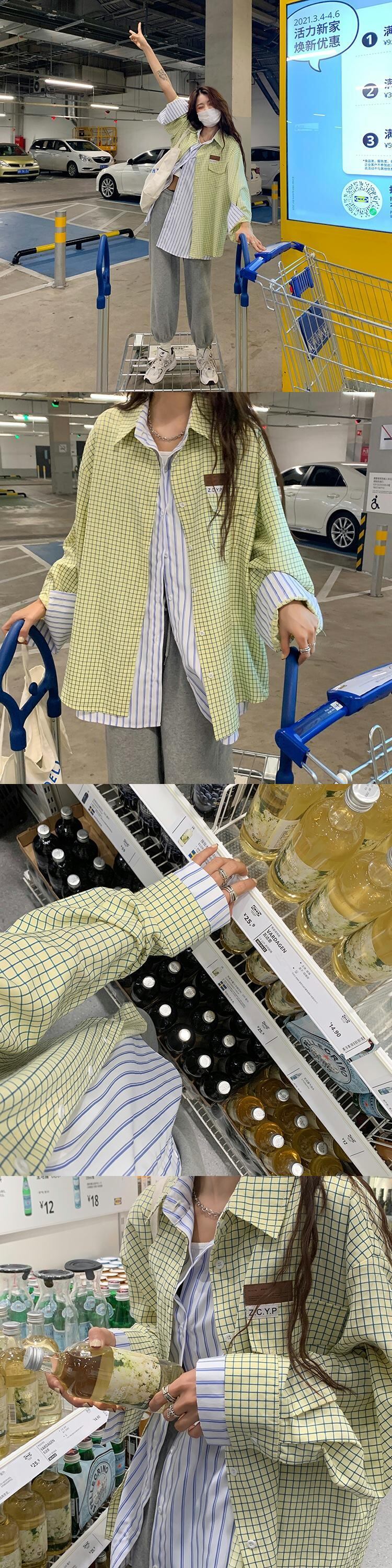 格子柄シャツ ジャケット スプリングオータムルーズ 春物 秋物 試着室9783881714