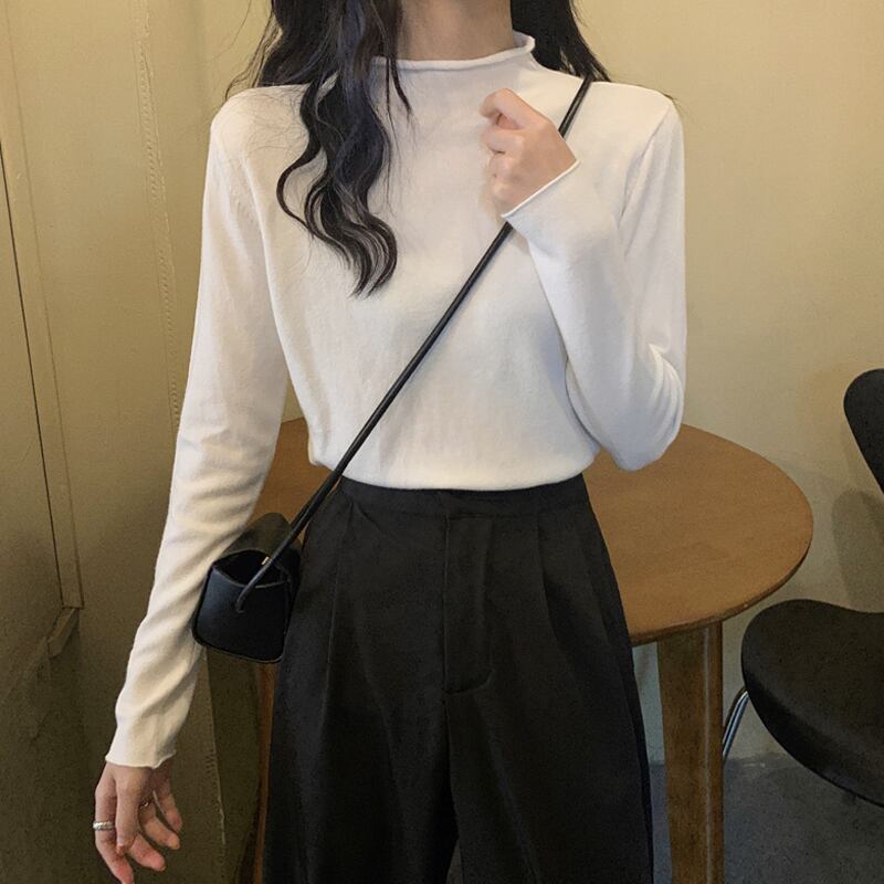 ホワイトカラーシャツ スプリングオータム薄手スリムニットセーター 春物 秋物 試着室80098284743