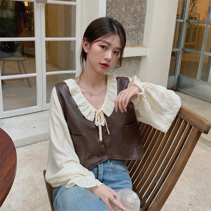 色:ワンピースアプリコットシャツ,カーキベストワンピース