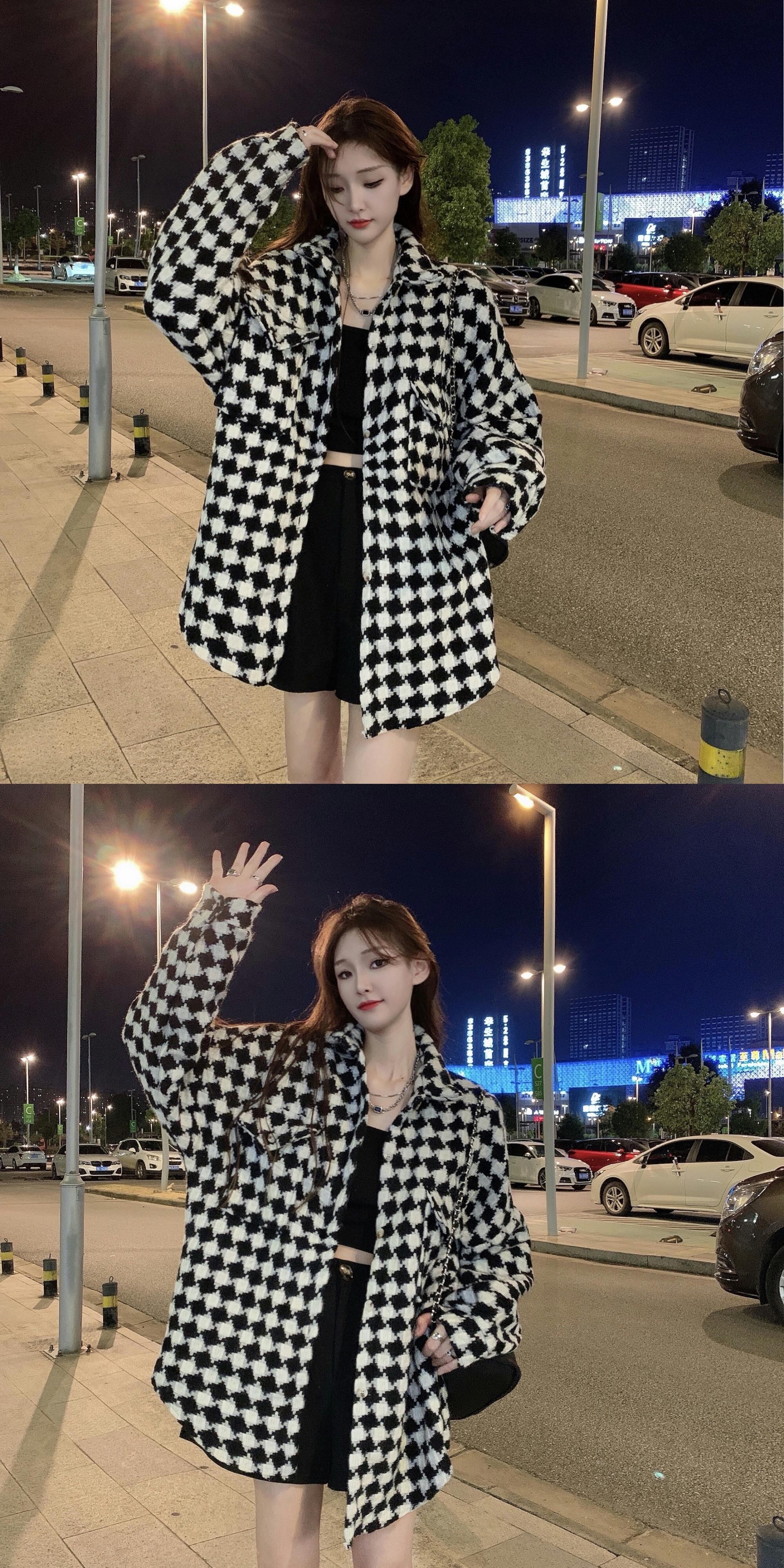 格子柄ジャケット スプリングオータムルーズ ストリート 春物 秋物 試着室51010579907
