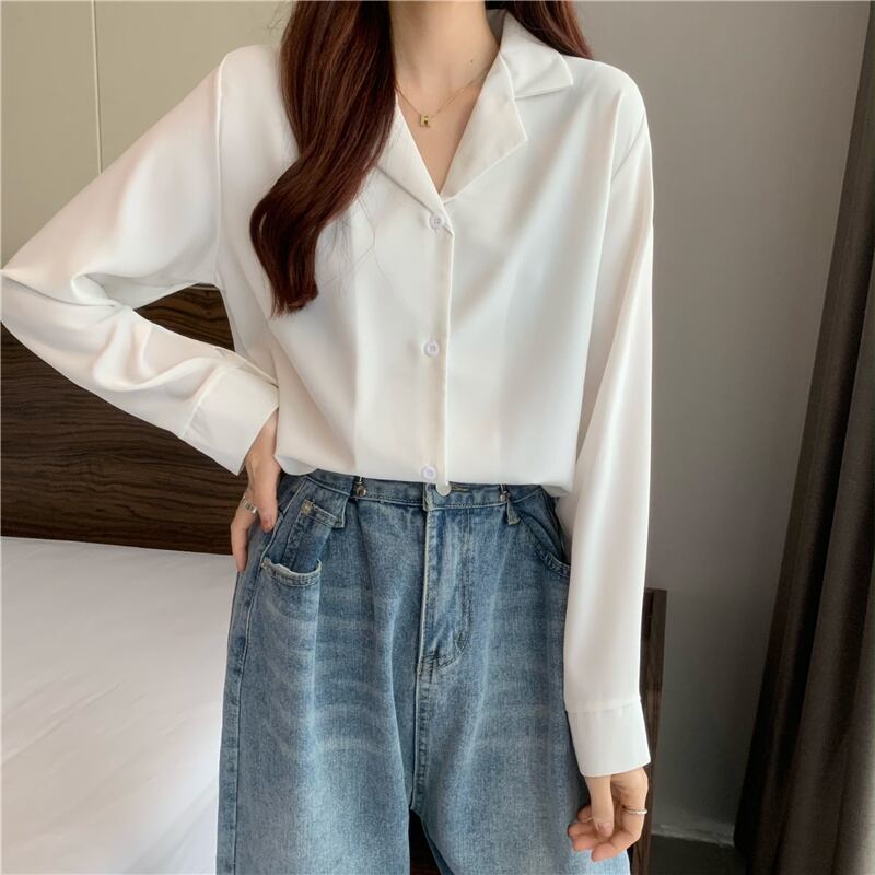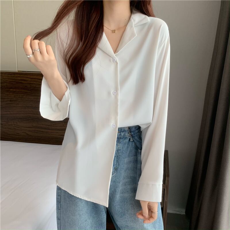 ホワイトシャツ スプリングオータムスタイルトップス ロング 春物 秋物 試着室46656224411