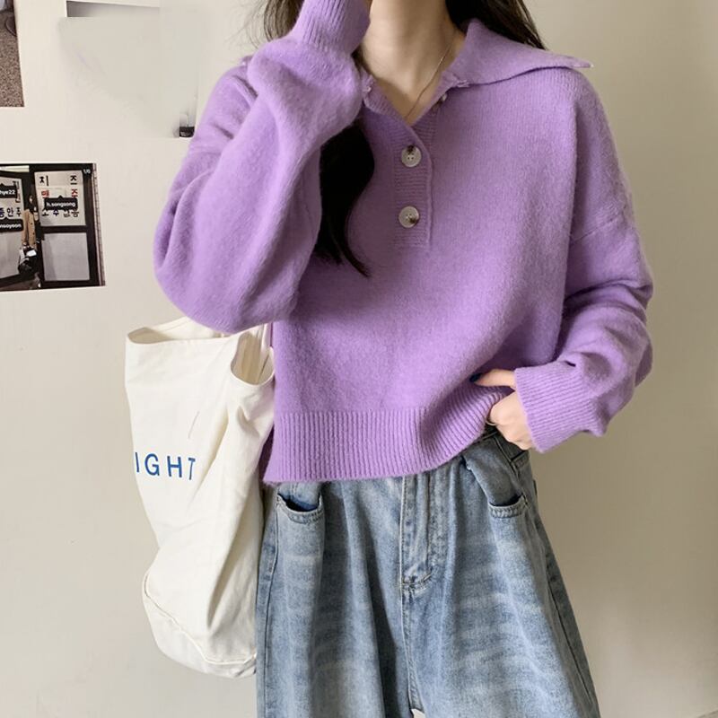 カラーセーター スプリングオータムルーズスタイルショートニットトップス 春物 秋物 試着室94491239455
