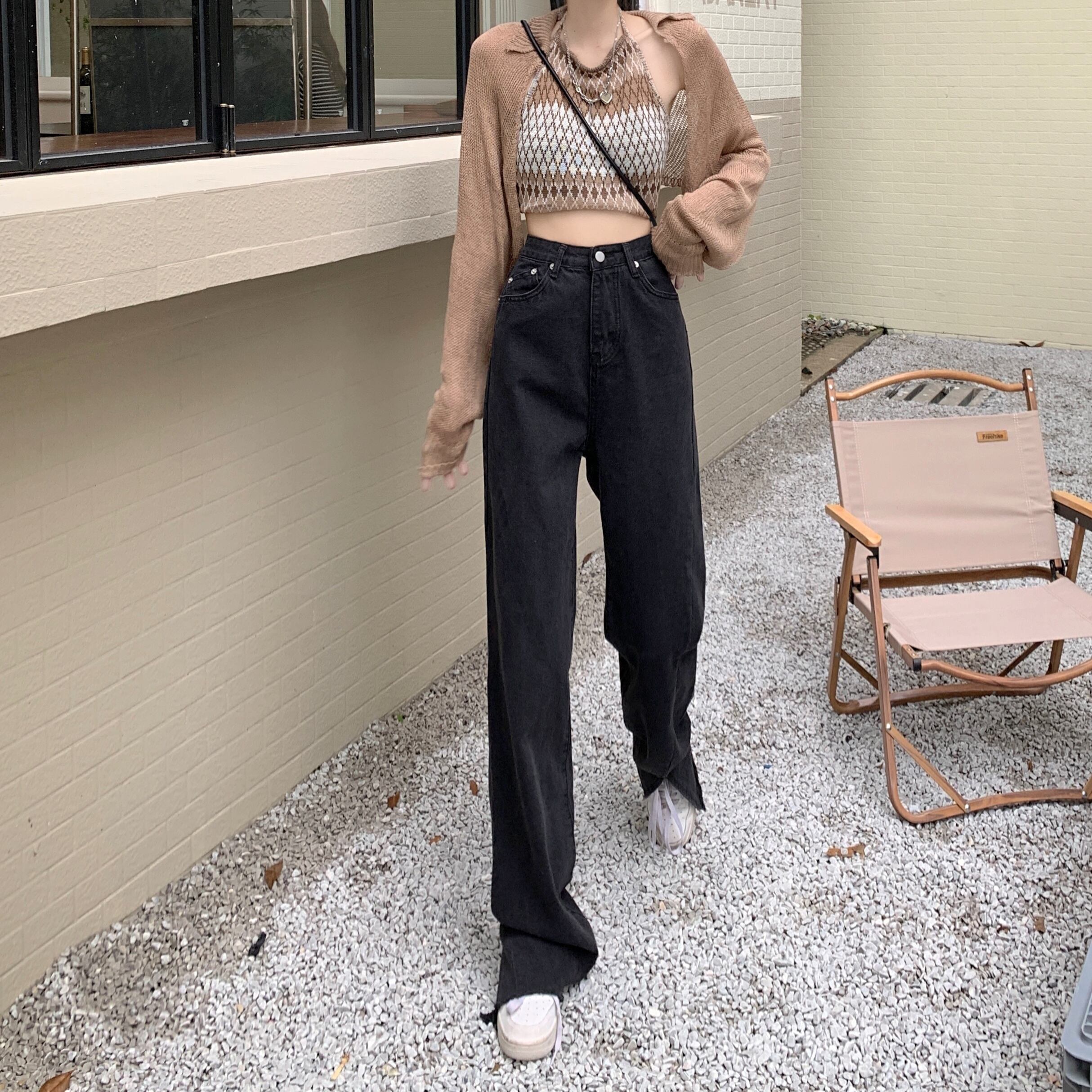 スプリングオータムブラックジーンズ ルーズパンツ ワイドレッグ 春物 秋物 ワイドパンツ 試着室67629984966