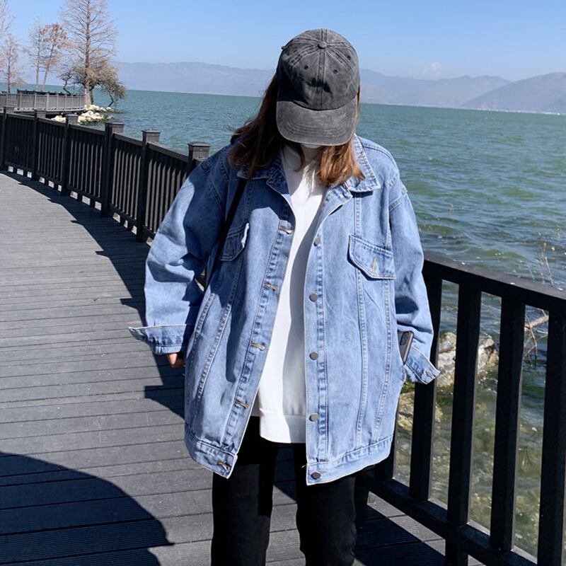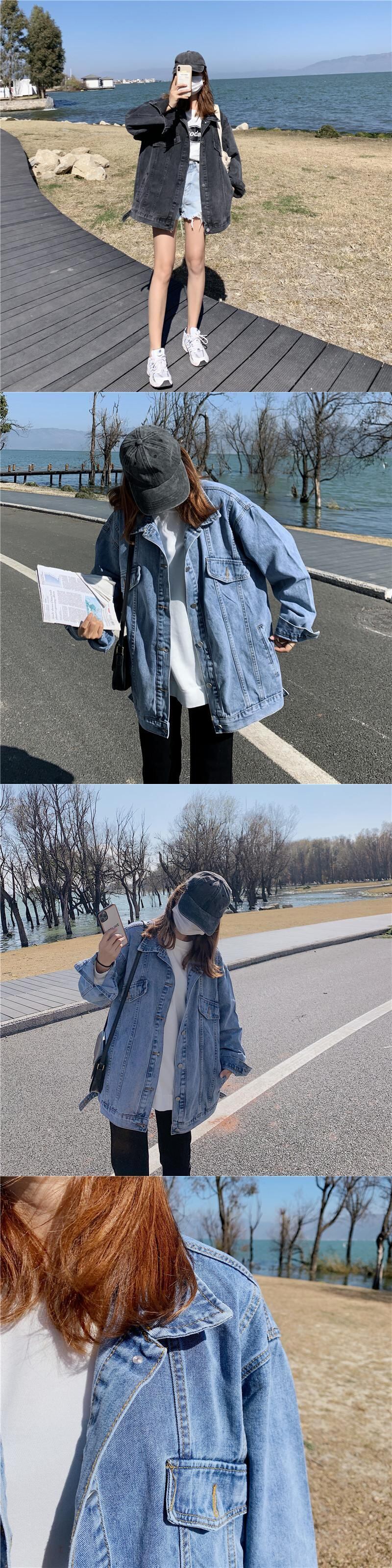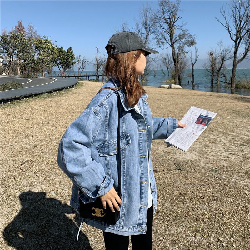 ブラックジャケット スプリングオータム薄手スタイルルーズ長袖スリーブトップス ロング ストリート 春物 秋物 試着室45066780760