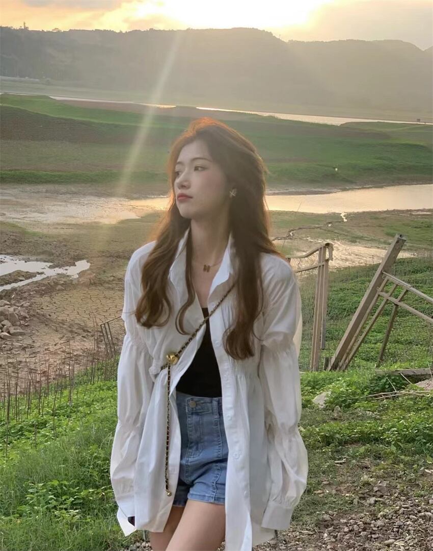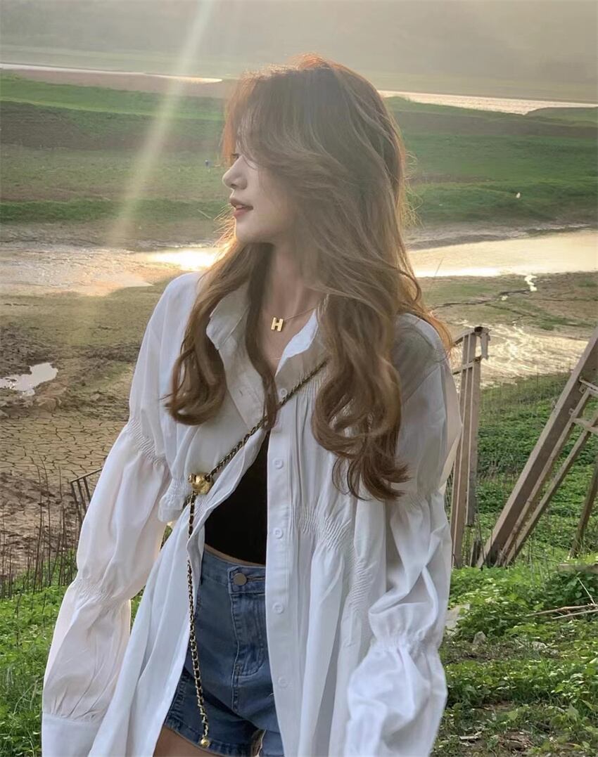 ホワイトシャツ スプリングオータムトップス ロング 春物 秋物 試着室98737271750