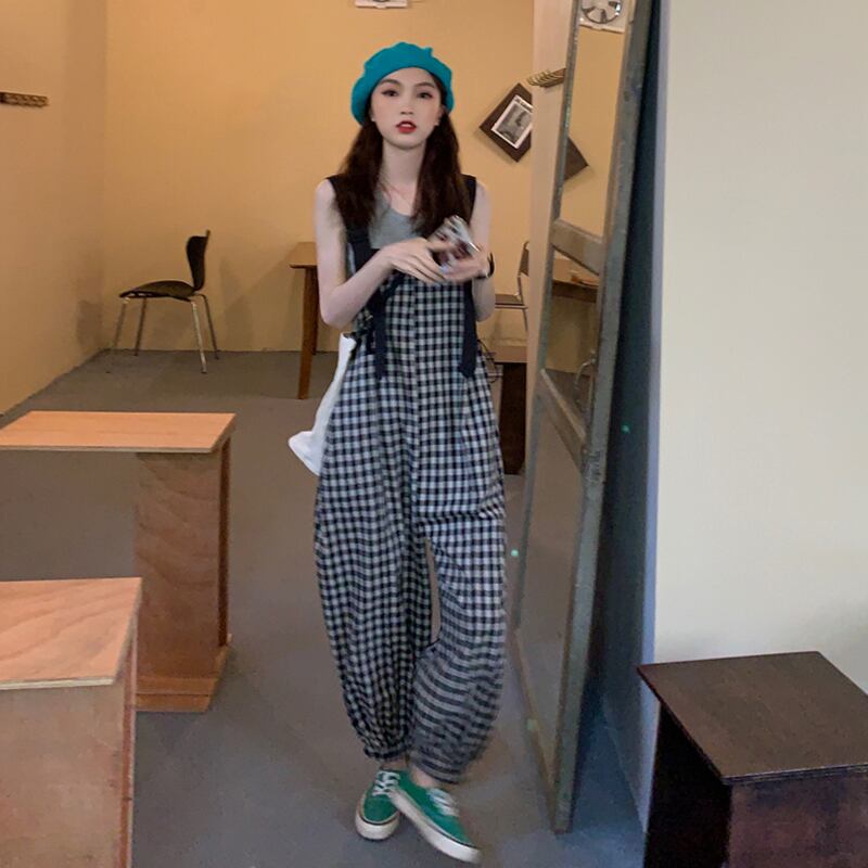 格子柄オーバーオール サマー薄手ワンピースパンツ カジュアル 夏物 試着室81672721188