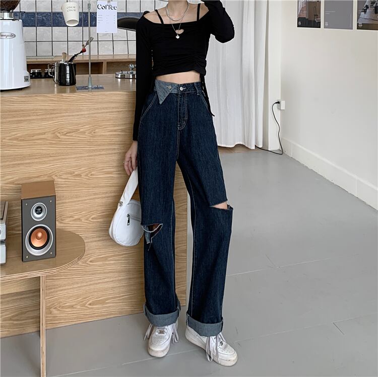 ジーンズ スプリングオータムハイウェスト薄手パンツ ルーズ 春物 秋物 試着室69147339222