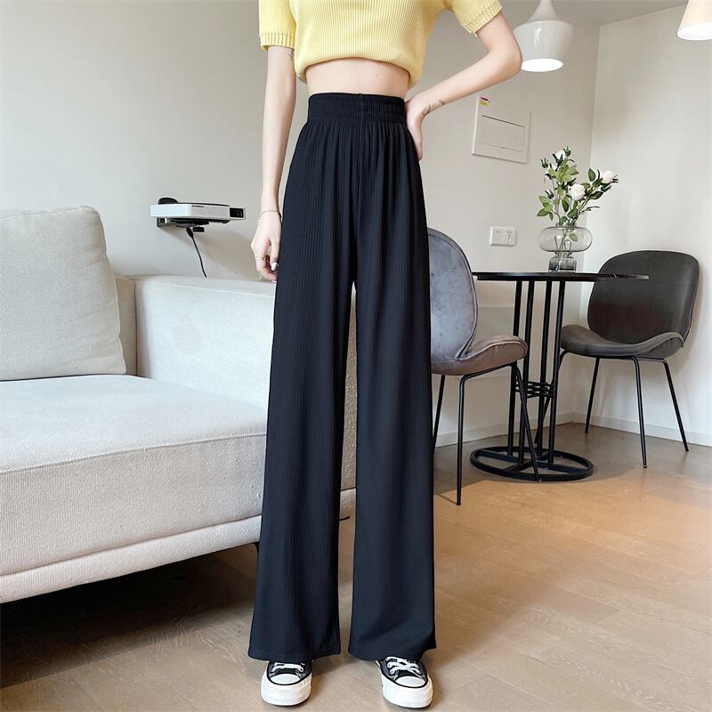 ブラックパンツ ハイウェストウェストサマーカジュアルルーズ薄手 夏物 試着室8157138771