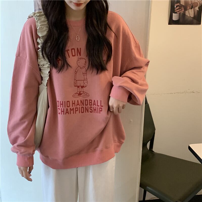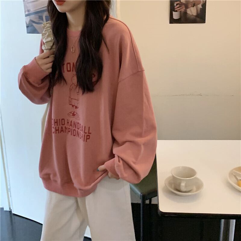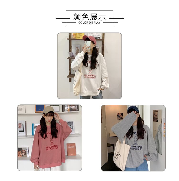 ホワイトラウンドネックセーター スプリングオータム薄手ルーズスタイルブラウス 春物 秋物 Oネック 試着室85511017373