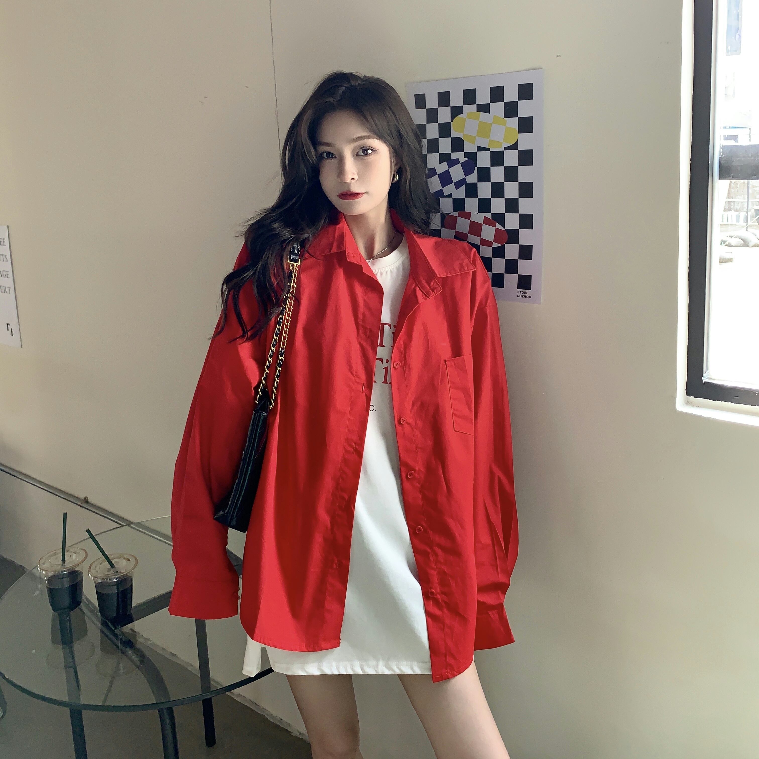 色:シングルレッドシャツ,白いシャツのワンピース,ホワイトTシャツシングルピース