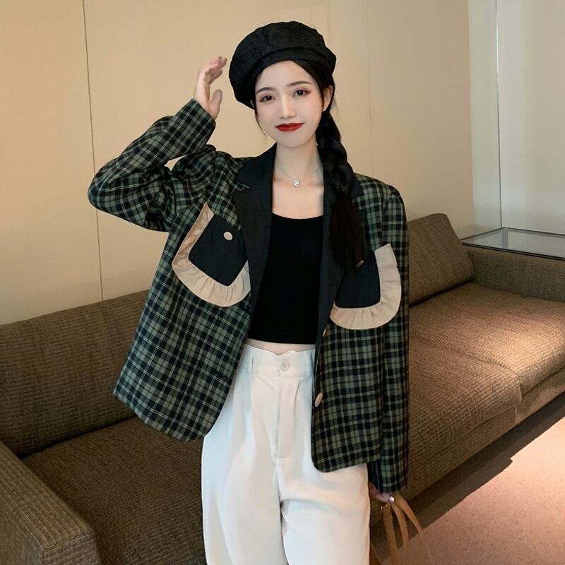 格子柄ジャケット スプリングオータム薄手カジュアル 春物 秋物 試着室17865715893