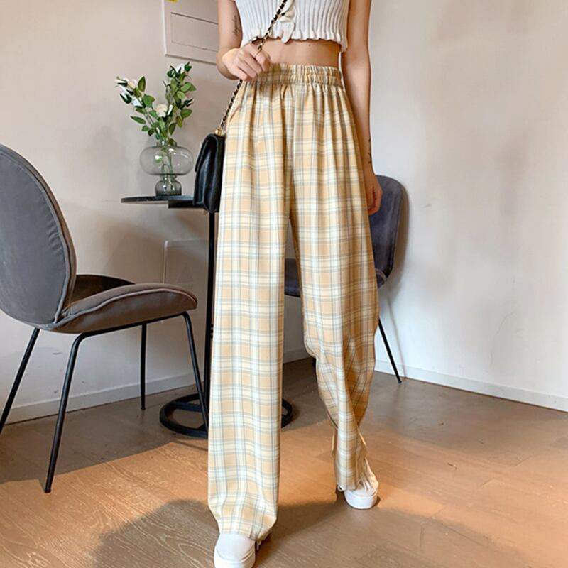 格子柄パンツ スプリングオータム薄手ハイウェストウェストルーズカジュアル 春物 秋物 試着室97432810195