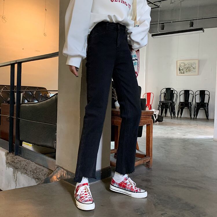 ブラックジーンズ スプリングオータムルーズハイウェストウェストスリムパンツ 春物 秋物 試着室40476318143
