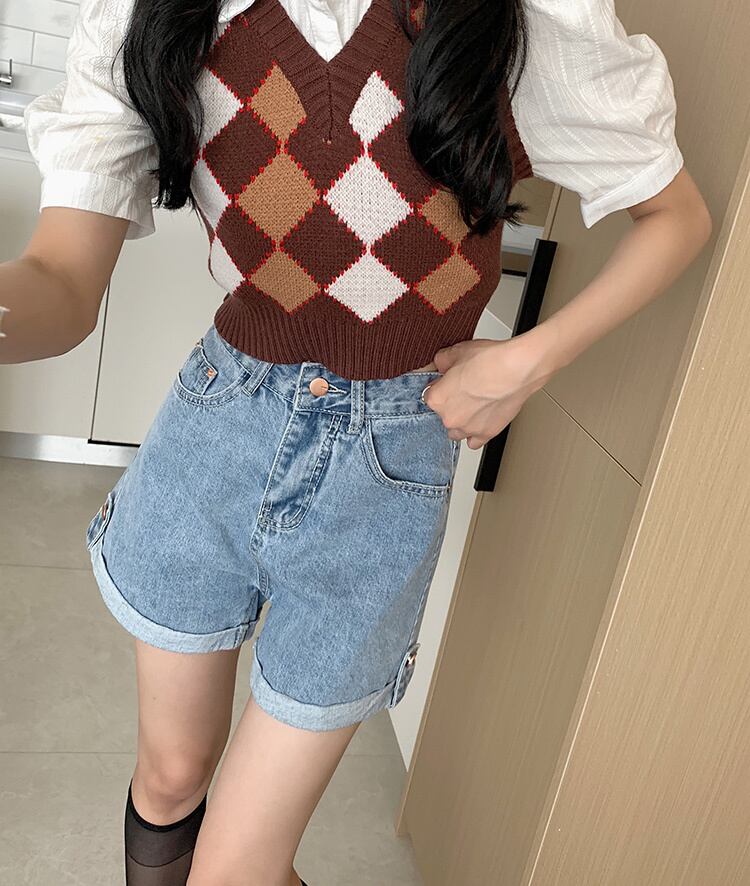 ショーツ サマー薄手レッドスタイルハイウェストウェストルーズワイドレッグAラインパンツ 夏物 ブルマー ワイドパンツ 試着室91598303686