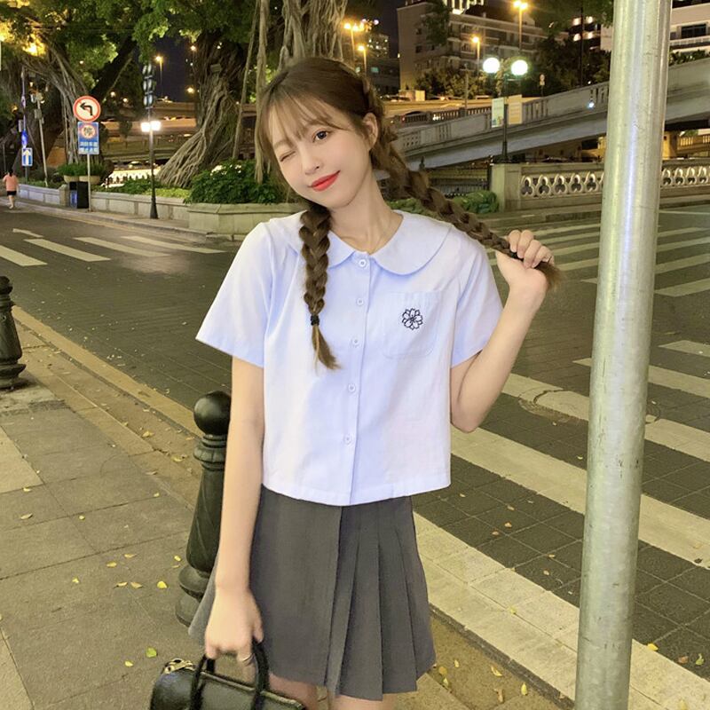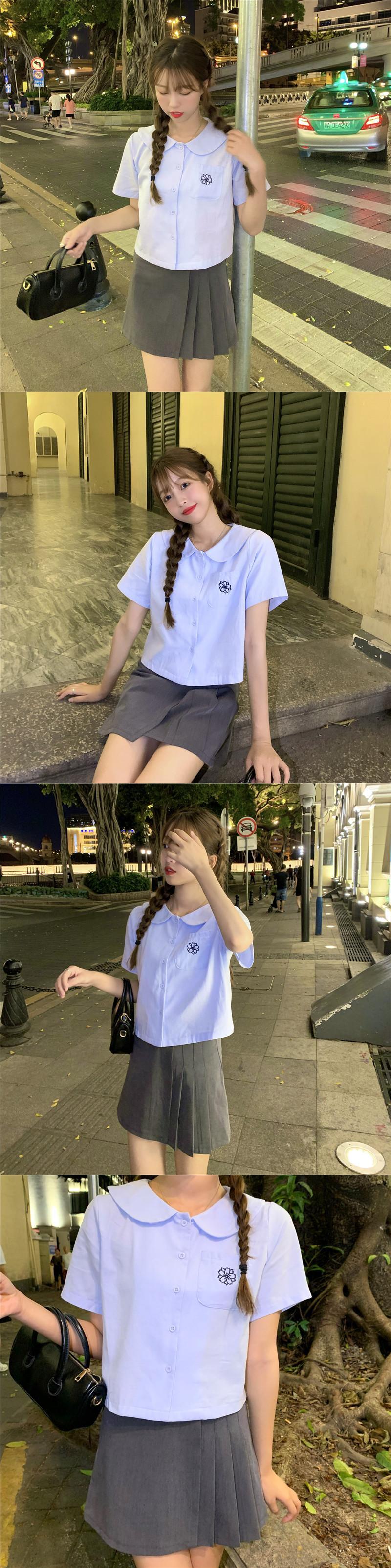 ホワイトショートカラーシャツ サマートップス 夏物 試着室46023141574