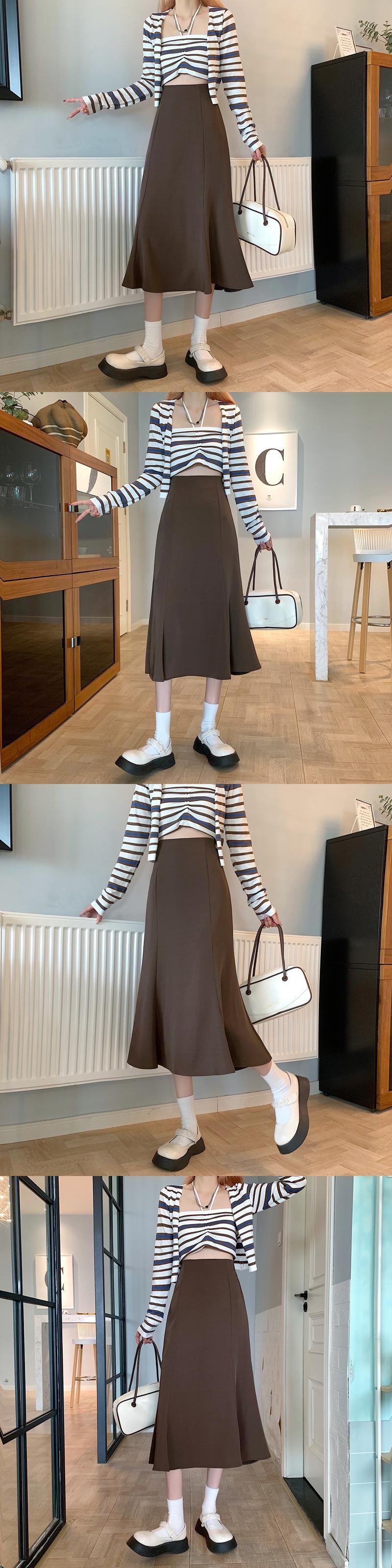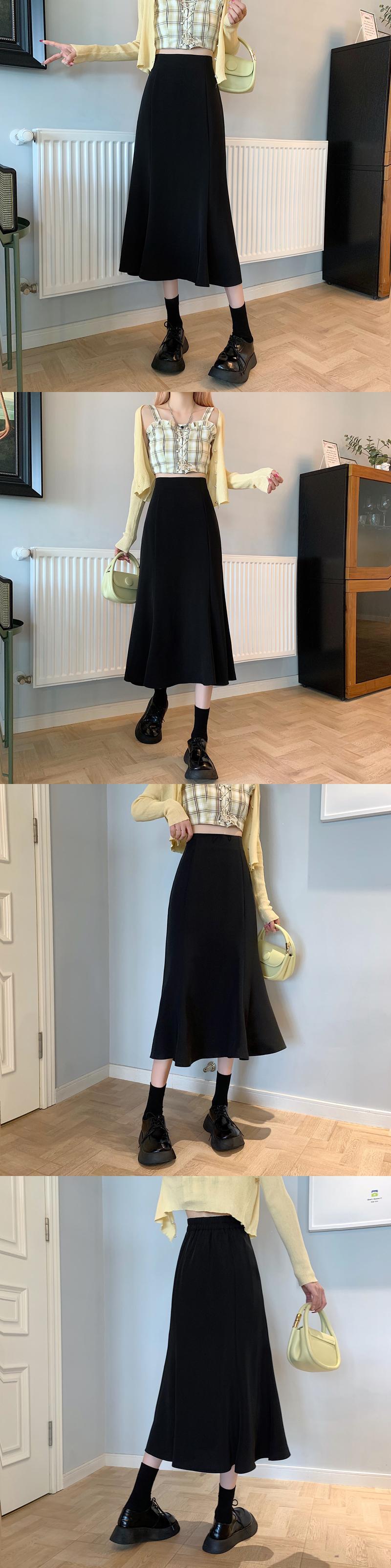 ブラックスカート スプリングオータムハイウェストウェストAラインロング 春物 秋物 試着室51407368646