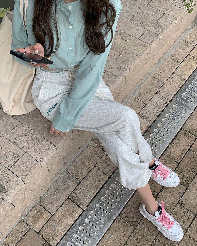 色:ミントグリーンシャツワンピース,ライトグレーのスウェットパンツワンピース