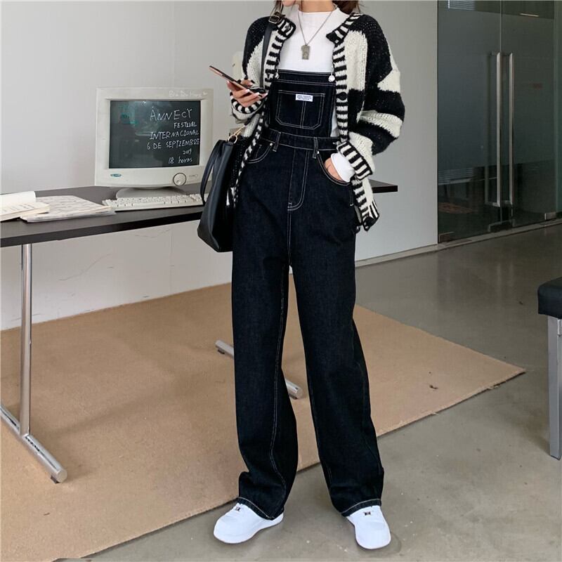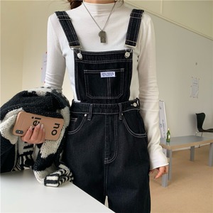 スプリングオータムブラックオーバーオール ルーズレッドパンツ 春物 秋物 試着室62806512871