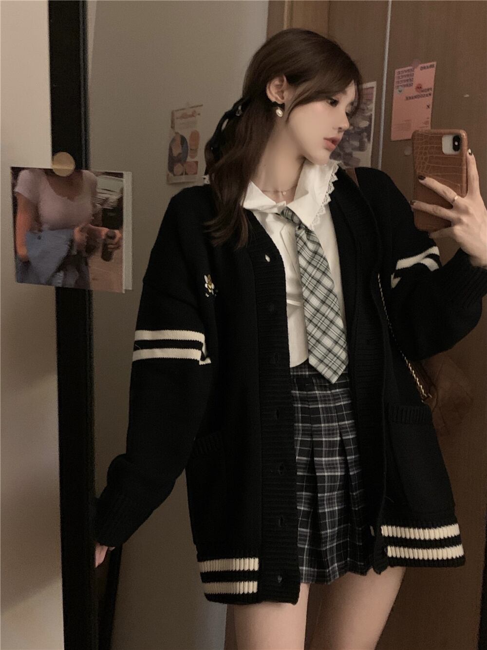 ブラックセーター コート スプリングオータムウィンタースタイルスタンダードニットカーディガントップス レトロ 春物 秋物 冬物 試着室36374386095